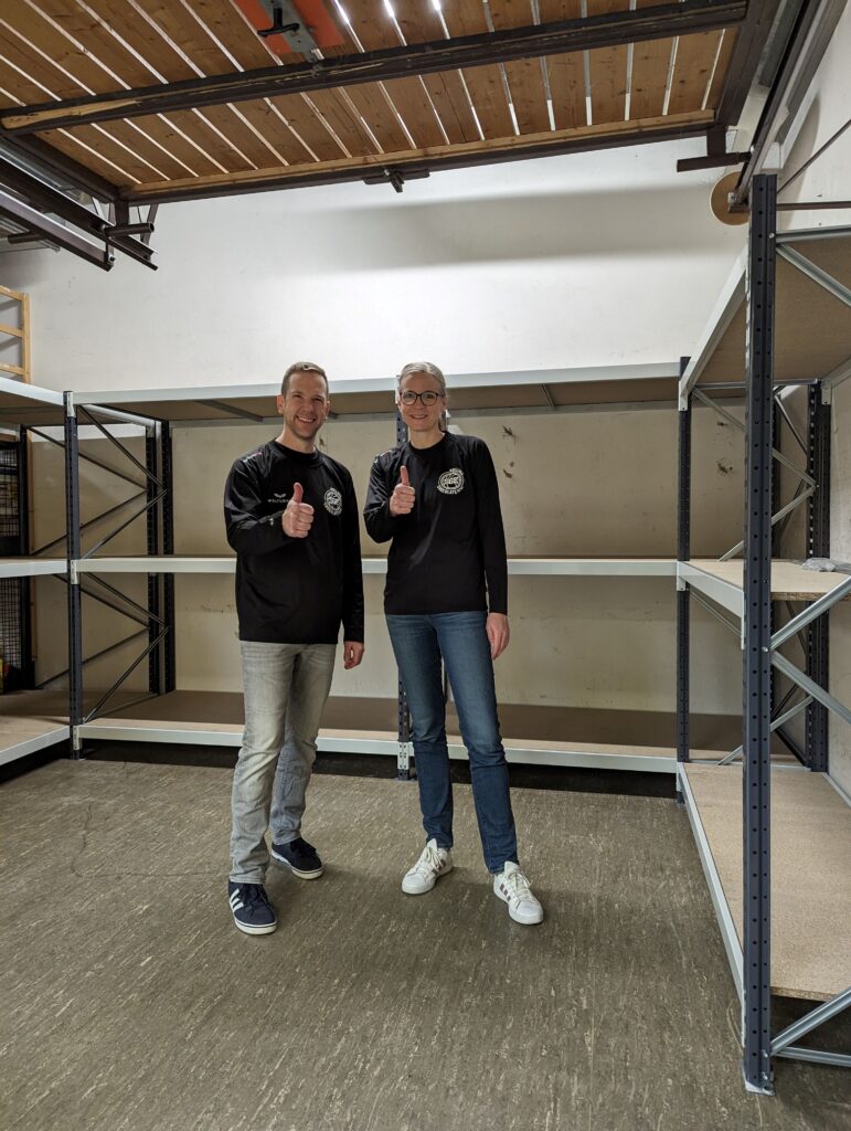 Mit den 5000€ Fördergeldern aus dem von SAP und der Metropolregion Rhein-Neckar gestifteten Award haben wir Schwerlastregale und eine Aufhängung für unsere Ersatzräder und Ersatz-Reifen realisiert.