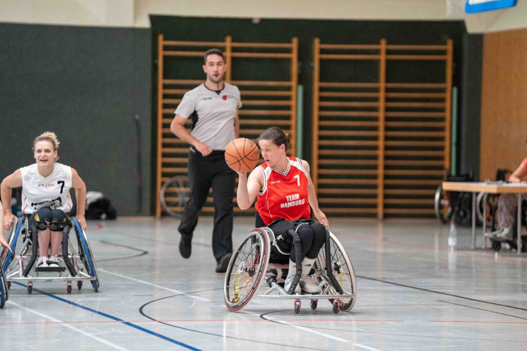 Team Hessen führte in diesem Finale nie mehr als mit einem Punkt und schlug trotzdem oder gerade wegen dieses einen Punktes das Team Bayern mit 41:40. Das Team Hessen bestehend aus Lisa Nothelfer, Barbara Groß, Catharina Weiß, Maria Kress, Katharina Lang, Sarah Heibutzki, Leonie Büdenbender Saskia Zimmermann und der Trainerin Anna-Maria Müller ist Deutscher Meister der Damen im Rollstuhlbasketball 2023!