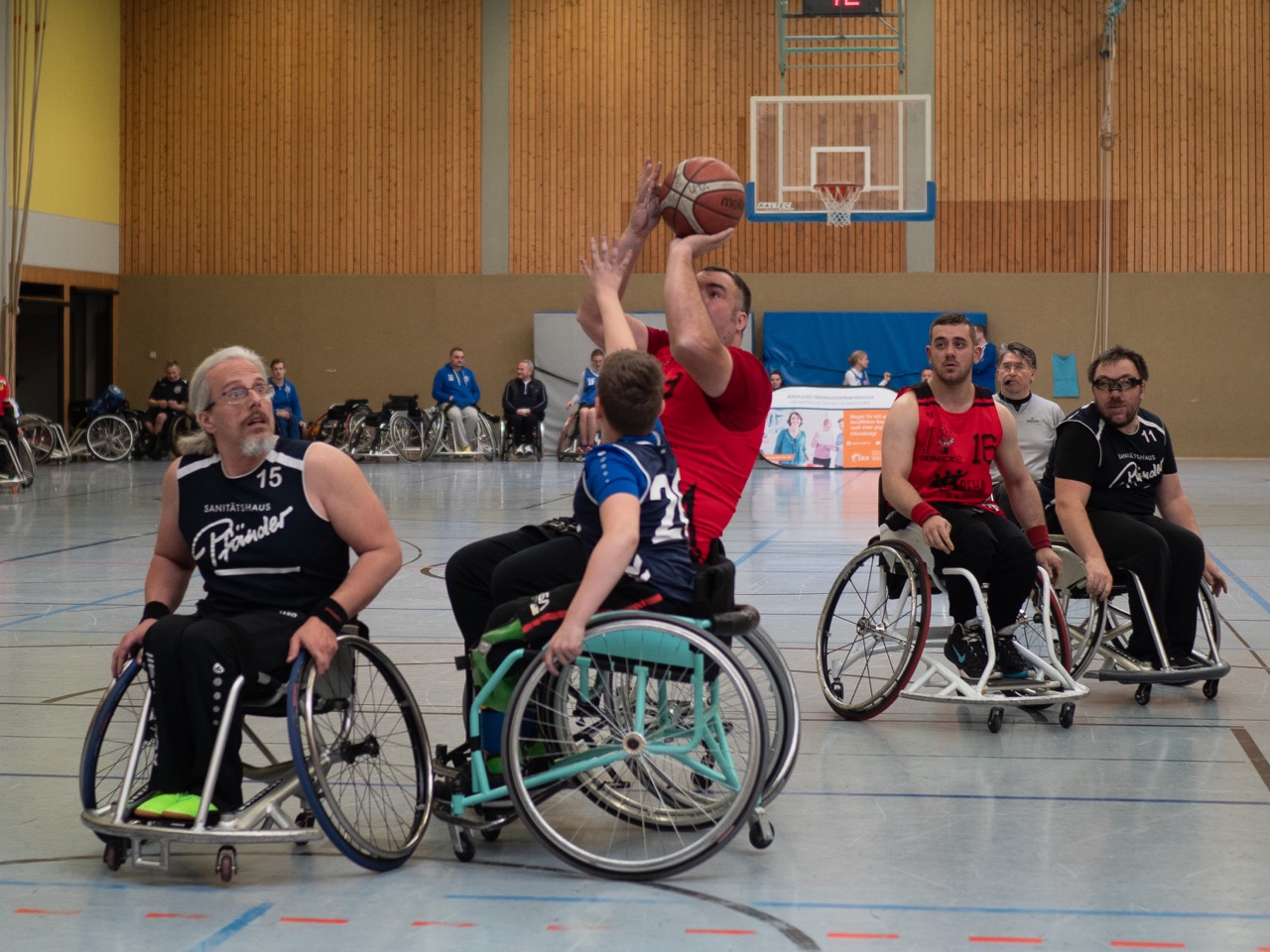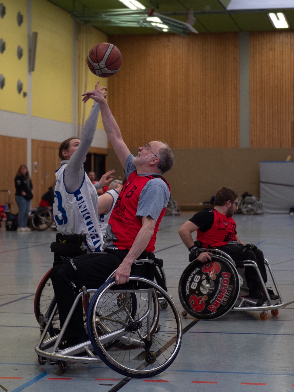 Dann gab es erstmal eine Pause für Heidelberg, denn die Mannschaften aus Freiburg und Trier spielten gegeneinander. Die beiden Teams waren immer in Schlagweite des jeweils anderen und wir sahen ein enges und ausgeglichenes Spiel. Zunächst gab es leichte Vorteile für die sehr fair spielenden Freiburger (nur 2 Fouls in dem gesamten Spiel). So ging es mit 23:17 in die Halbzeit.