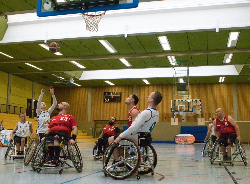 Nach dern ersten beiden zwei Doppelspieltagen am 13.10.2024 in Heidelberg und am 24.11.2024 in Dortmund stehen Kirchheims Rollstuhlbasketballer mit einer ausgeglichenen Bilanz von 2 Siegen und 2 Niederlagen auf Platz 5 in der Regionalliga 3.