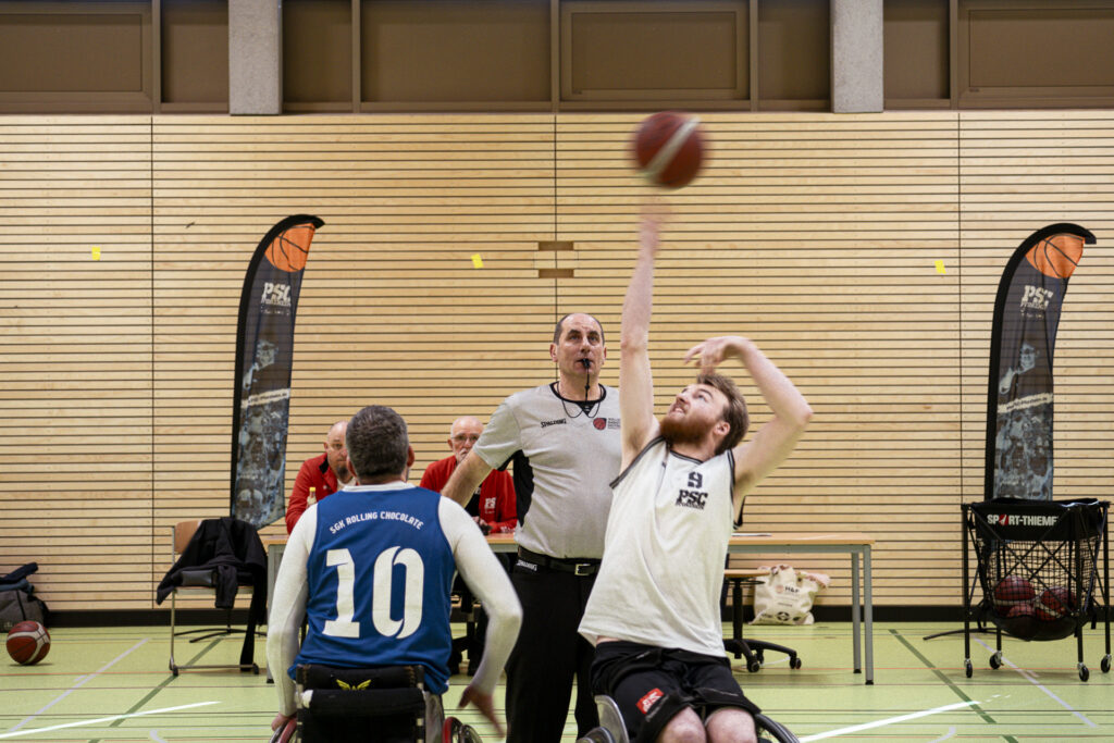 Mit nur einem Schiedsrichter, aber fünf Spielern auf jeder Seite, ging das Spiel los. Und es wurde schnell deutlich, wen die Rolling Chocolate als größte Gefahr für ihren Korb ausgemacht hatten: Den Pforzheimer Anton Welschof (25 Punkte). Sie versuchten es mit einem Vorchecking auf den Center, aber die Pforzheimer stellten gute Blöcke und die Heidelberger orientierten sich nicht rechtzeitig zu ihm, weshalb diese Taktik nicht aufging. Dadurch kreierte Pforzheim nicht selten eine Überzahl und einfache Korbleger. Gleichzeitig war Heidelberg vorne unkonzentriert und legte teilweise einfache Punkte daneben. Darum stellten die Chocolates auf eine Zonenverteidigung um, was besser funktionierte. Gleichzeitig schafften sie es weiterhin nicht, zu punkten, weshalb man in den ersten beiden Vierteln jeweils nur einen einstelligen Score hatte. Dadurch führten die Pforzheimer zwischenzeitlich verdient mit 14 Punkten und zur Halbzeit immernoch komfortabel mit 12 Punkten (26:14). Nun war es an den Heidelberger Coaches Marc Westermann und Thilo Prünte, sich etwas zu überlegen, wie man diesen Rückstand aufholen kann und am gesamten Team, diese Ideen umzusetzen.
