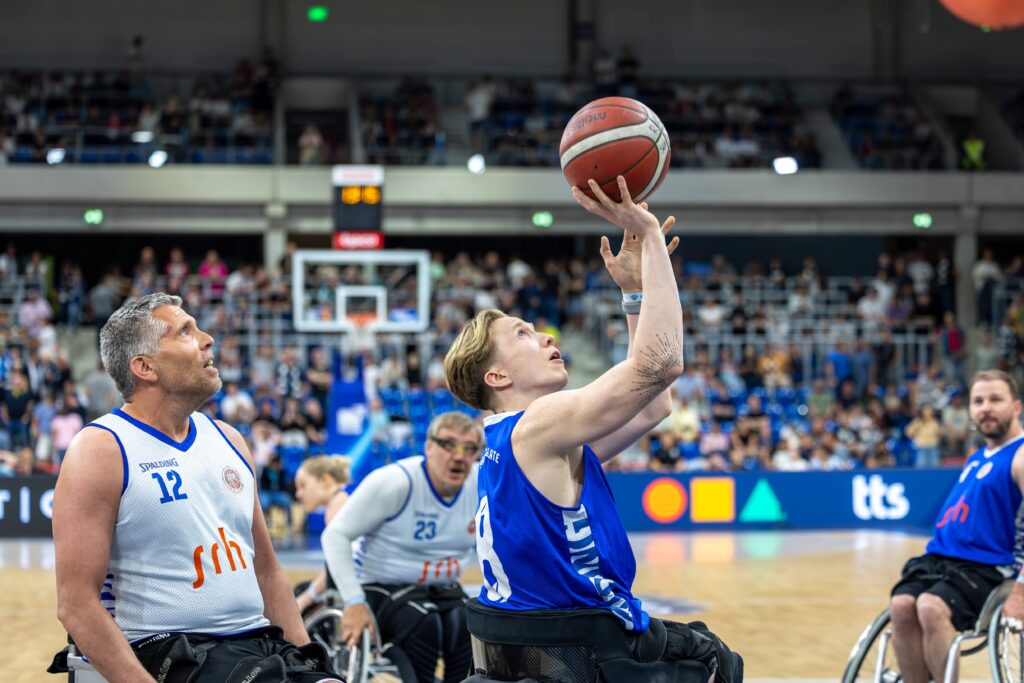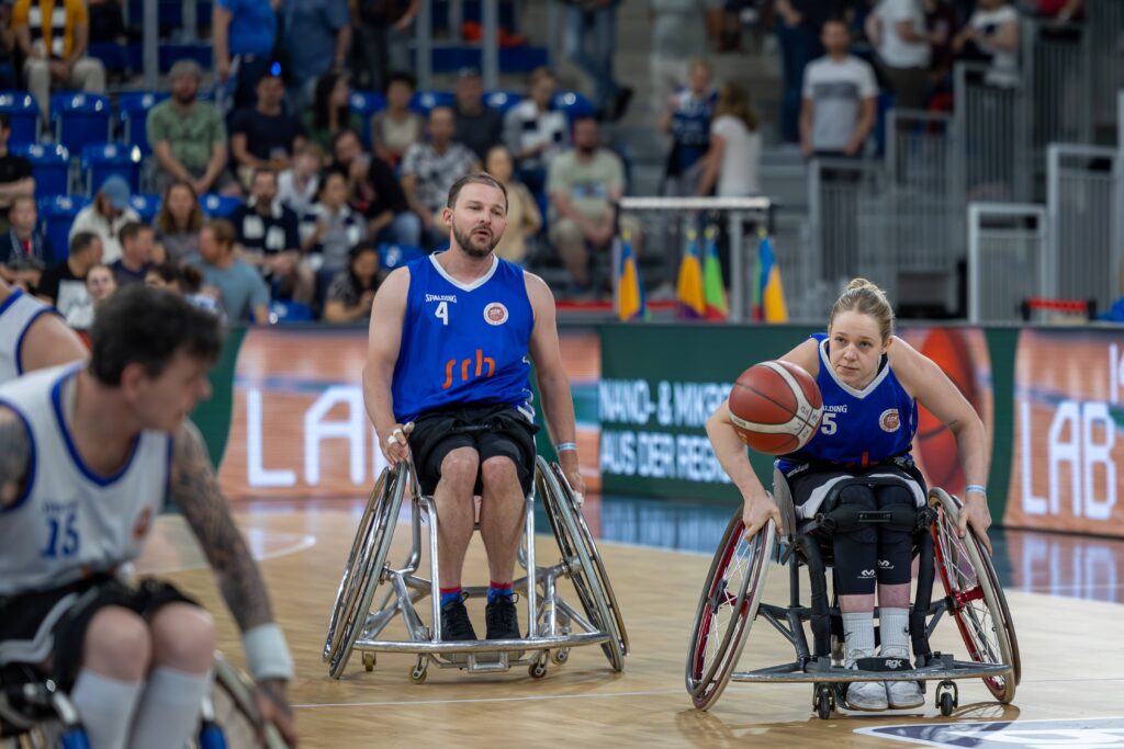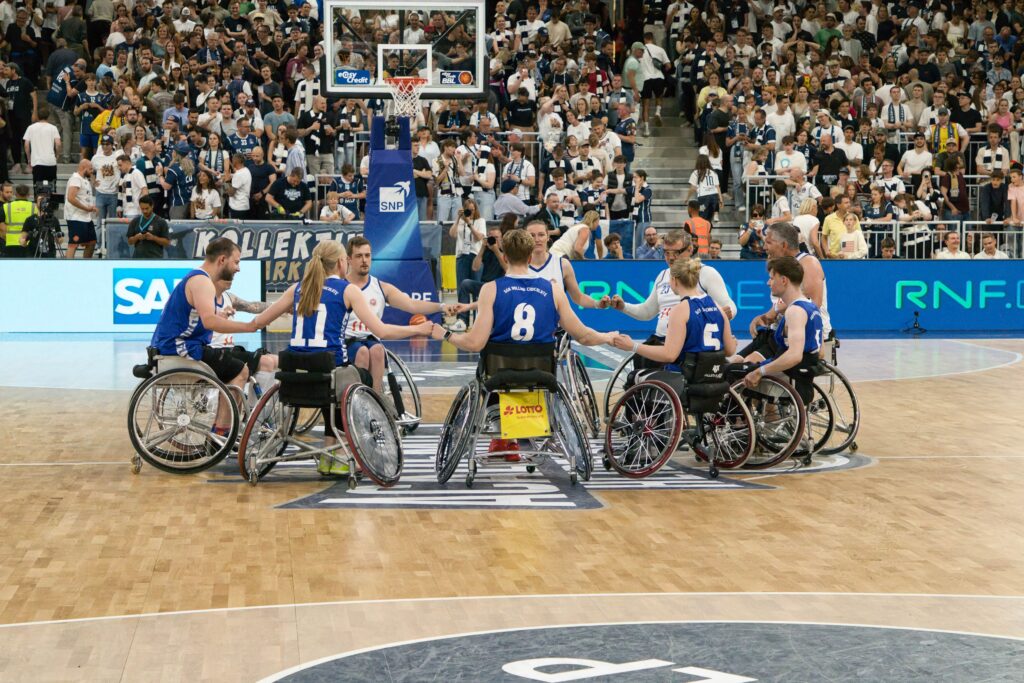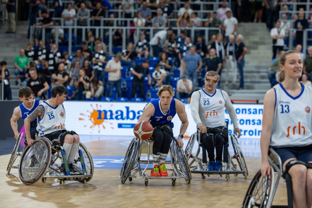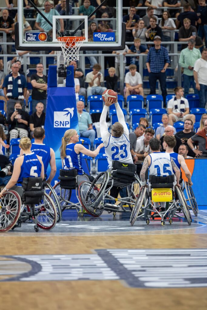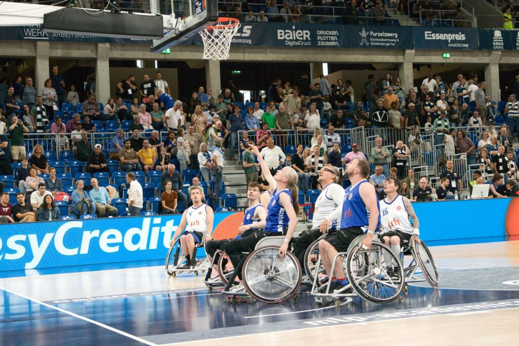 Vor ausverkauftem Haus im SNP Dome und knapp 4500 Zuschauern durften wir in der Halbzeitpause des Viertelfinal-Playoffs der MLP Academics Heidelberg gegen die Chemnitz 99ers zeigen, wie dynamisch und mitreißend Rollstuhlbasketball sein kann. Unser Showspiel sorgte für Staunen und Applaus – ein starkes Zeichen für gelebte Inklusion und sportliche Vielfalt.