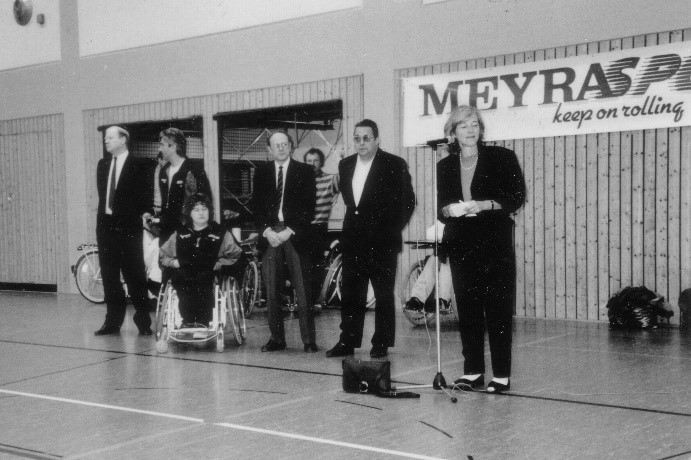 Von der großen paralympischen Sportbühne nun aber zurück zu den Rolling Chocolate, die sich 1982 als Zusammenschluss von zunächst sieben aktiven Sportlern als Abteilung Rollstuhlbasketball der SGK Kirchheim als „SGK-Rollis“ gründeten.