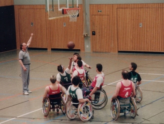 Wenn Bruno Trull als einer der Urgesteine des Rollstuhlbasketballs in Heidelberg von den Anfängen erzählt, dann startet er bereits vor 1982. Denn schon vor Gründung der Rollstuhlbasketball-Abteilung bei der SGK gab es aktive Spieler am Berufsfortbildungswerk bfw. Und wenn man den historischen Bogen noch breiter spannen will, dann fiel der Startschuss für Rollstuhlbasketball in der Region eigentlich mit den Paralympics in Heidelberg im Jahr 1972 (die damals noch „Weltspiele der Gelähmten“ hießen). Übrigens fiel die Wahl auf Heidelberg als Austragungsort, weil dort eine im Gegensatz zu München hervorragende Infrastruktur in Sachen Barrierefreiheit bei Sportanlagen und Unterkünften zu finden war. Die Spiele der Rollstuhlbasketballer*innen waren am Ende wohl die beliebtesten Events der Paralympics in Heidelberg.