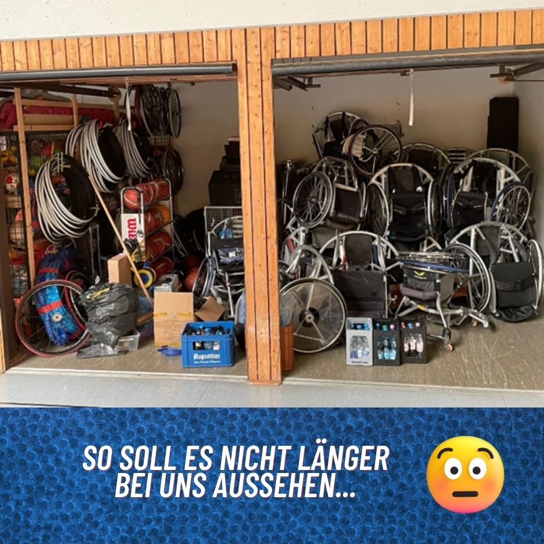 Wir wollen mit dem Geld unseren Rollstuhllagerraum sicherer und in Teilen barrierefrei gestalten. Denn – da werdet ihr uns recht geben – der aktuelle Zustand ist 🤐😭🙈.